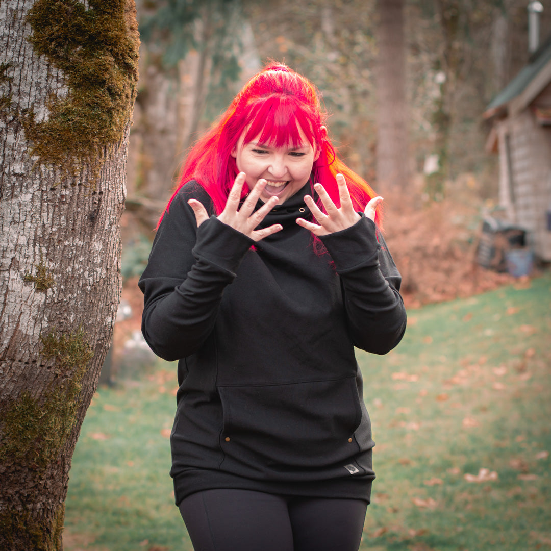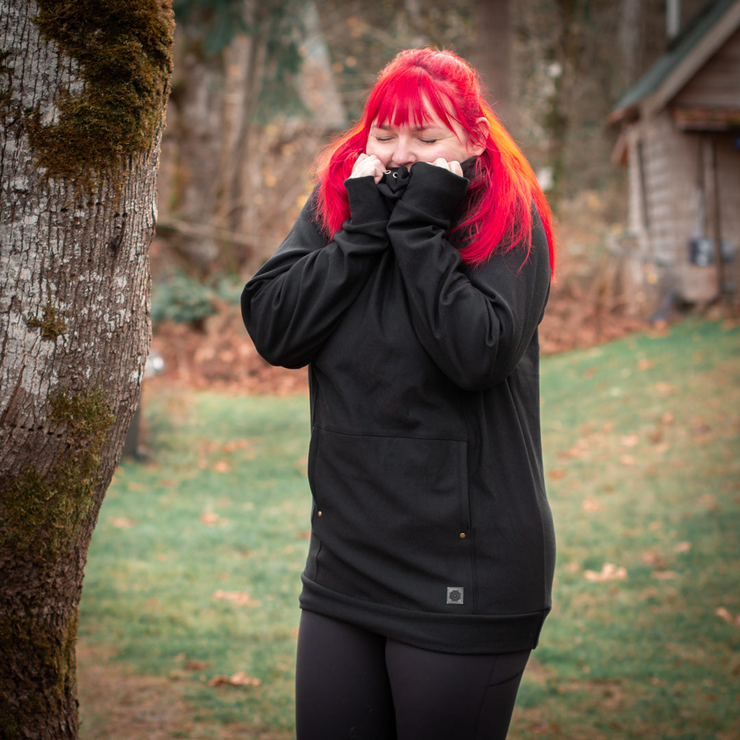Men. we've got you covered. Ladies too! Covered in warm fuzzy fleece.  This unisex sweater has extra length in the torso and arms, is super stretchy and sports an epic 3 panel hood with interior cowl.